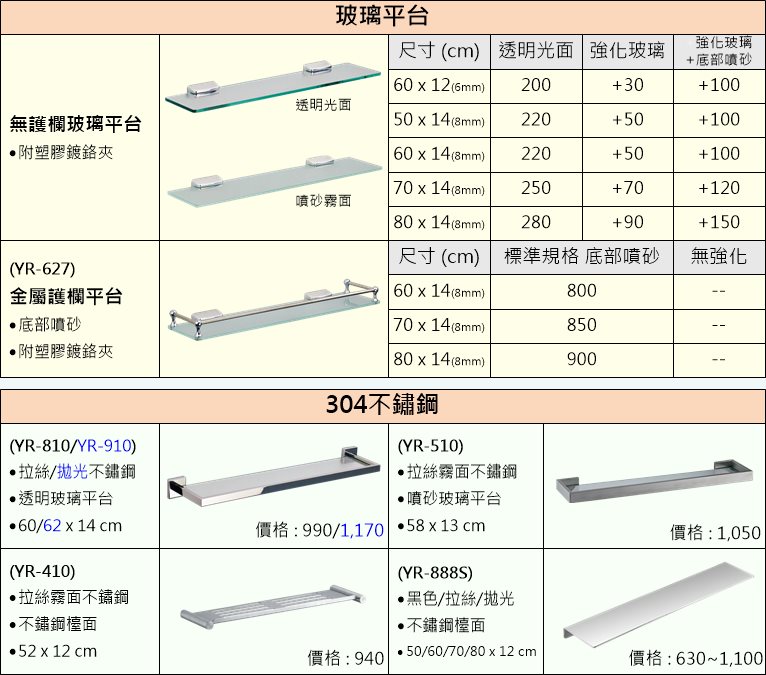 60*60cm 鏡子標準搭配 60*12cm 6mm平台 和 塑膠鍍鉻平台夾
